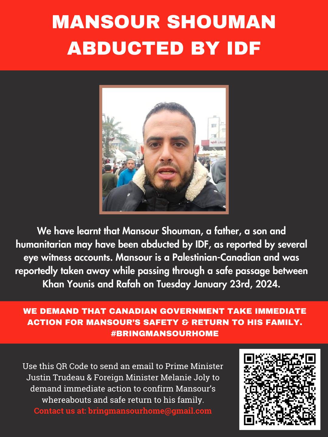 https://www.change.org/p/demand-immediate-release-of-mansour-shouman-from-israel-government-and-idf